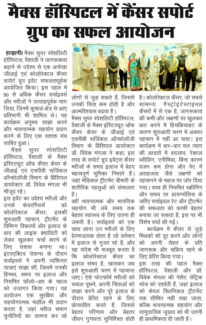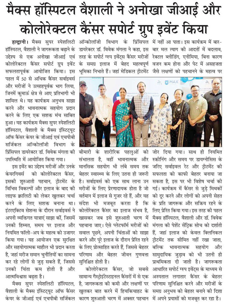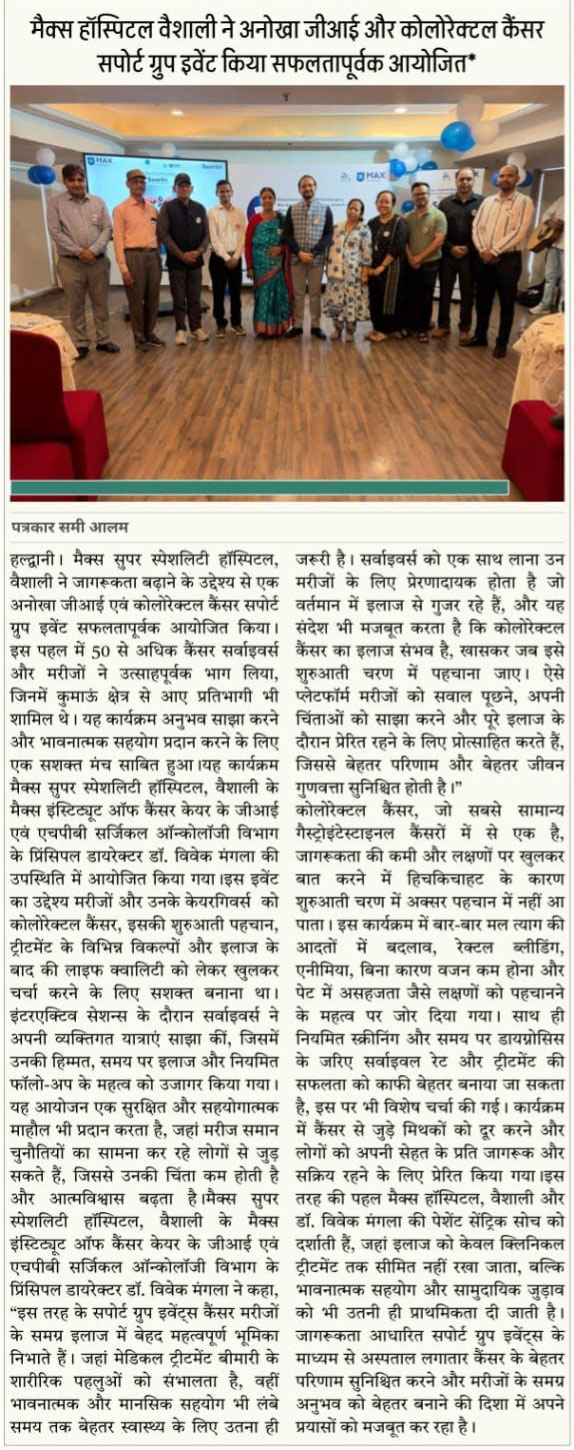 मैक्स इंस्टीट्यूट ऑफ कैंसर केयर ने जीआई सर्जरी की भूमिका पर दी जानकारी, तीन मरीजों को हुआ सफल इलाज
